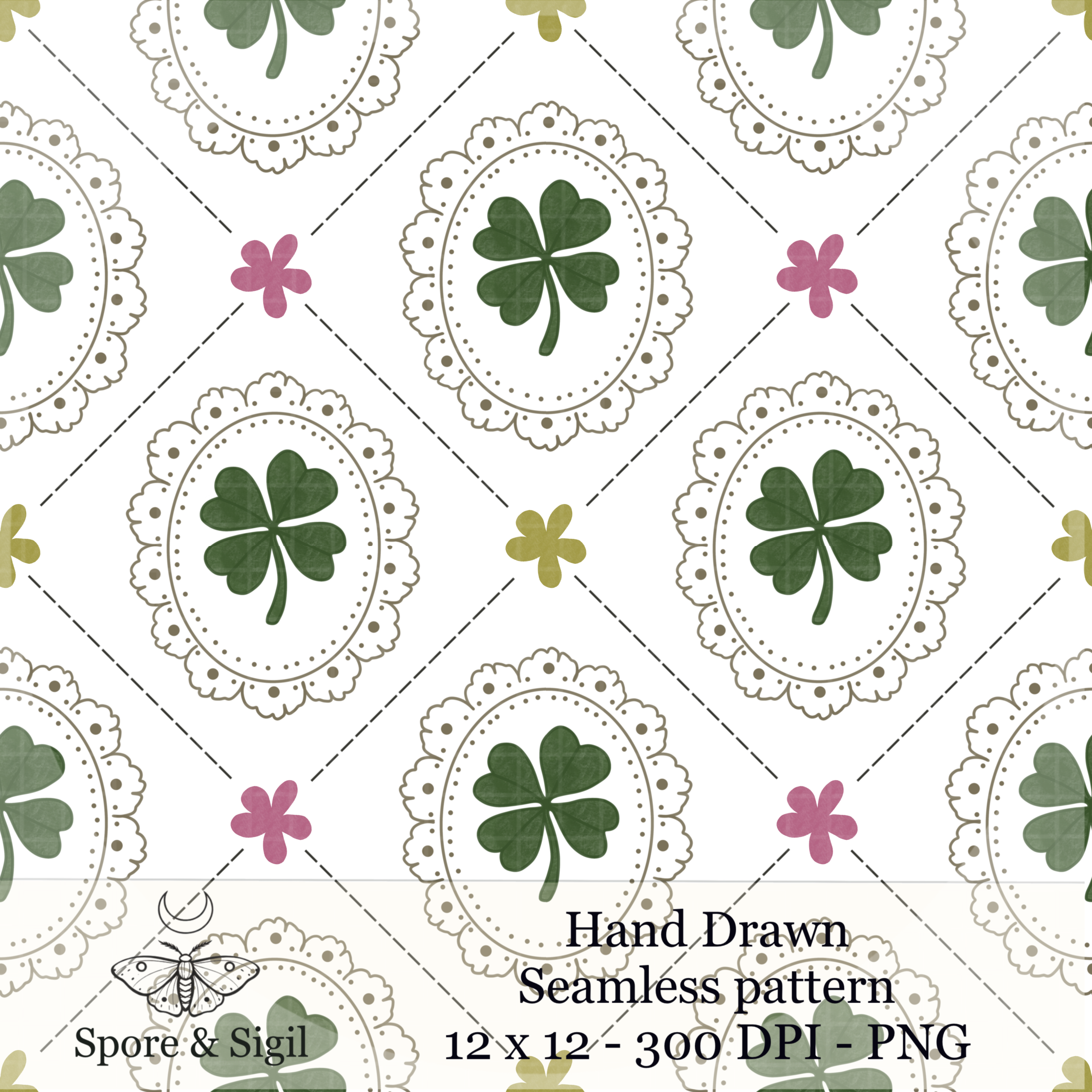 Framed Shamrock – Vintage Clover Seamless Pattern