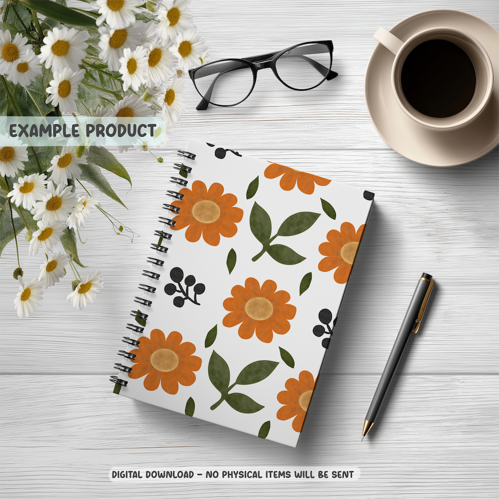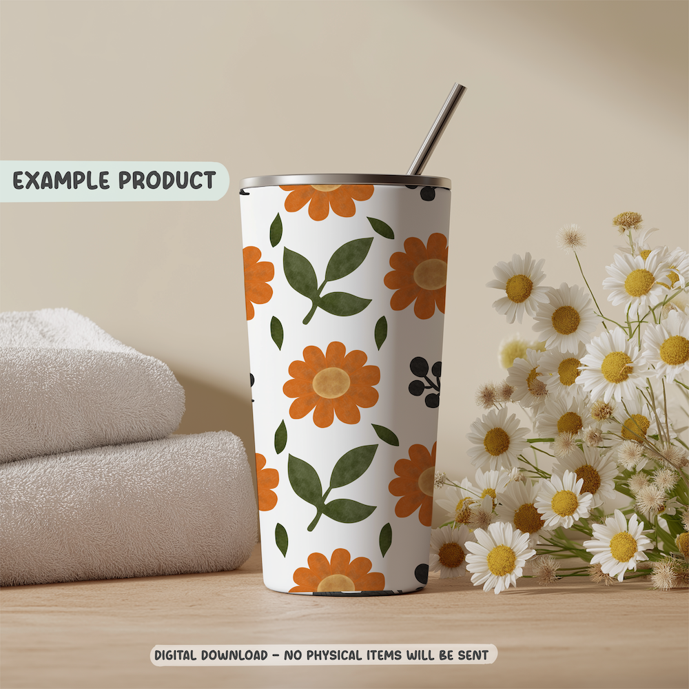Retro Orange Daisy Seamless Pattern – Botanical Floral Digital Paper (PNG)