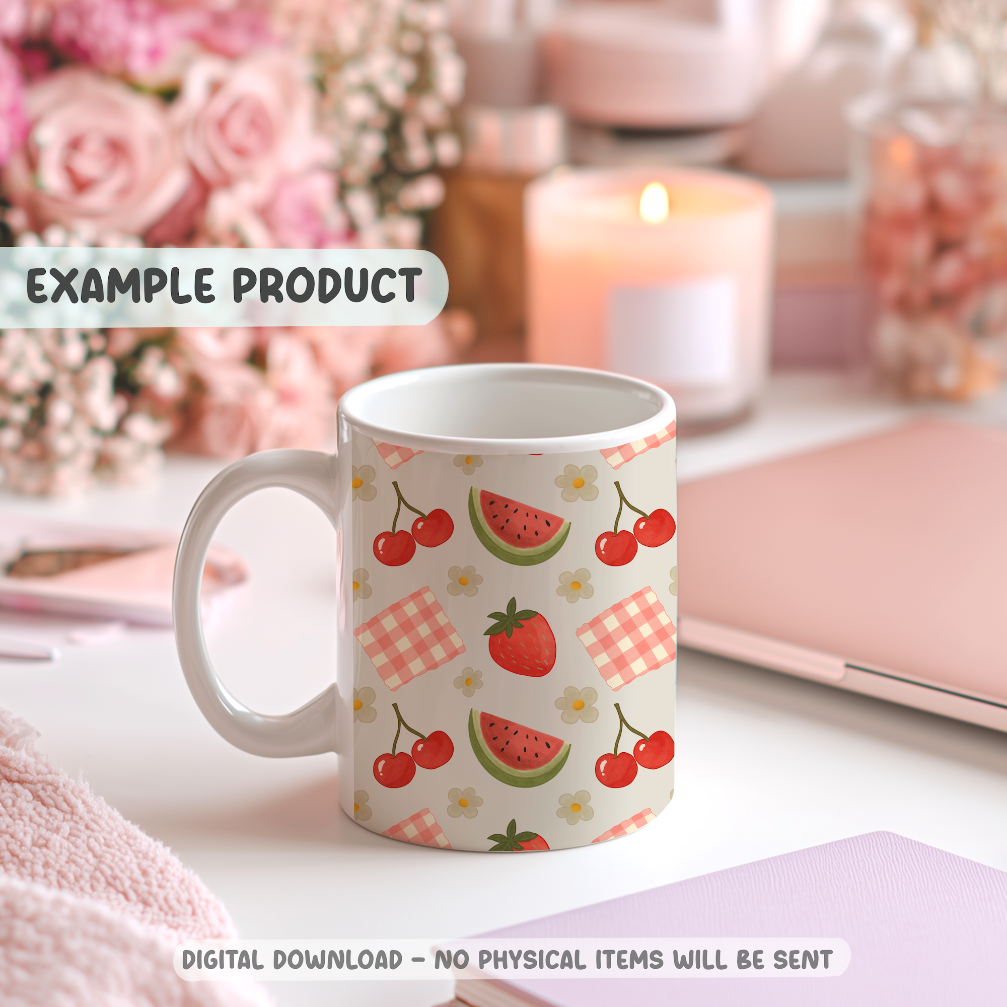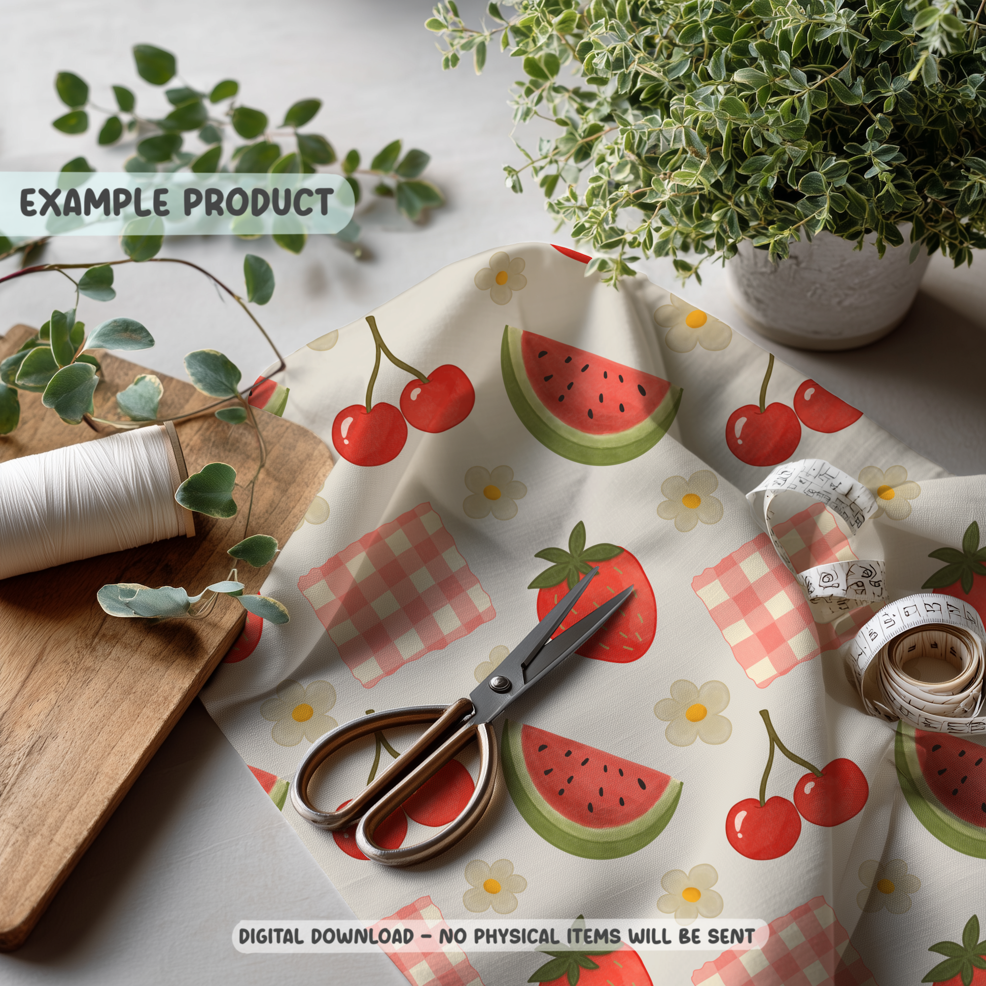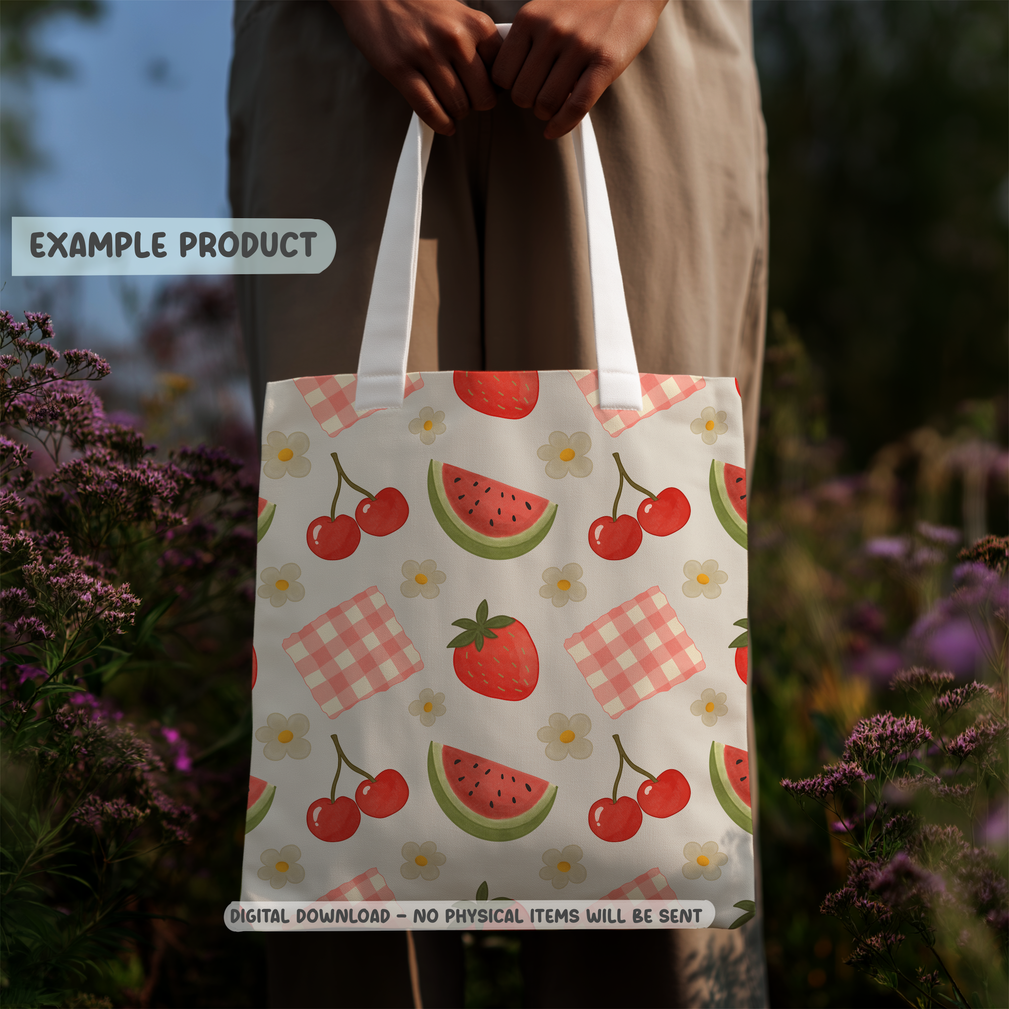 This picnic-inspired seamless pattern is perfect for fabric, scrapbooking, sublimation, packaging, and digital product design.